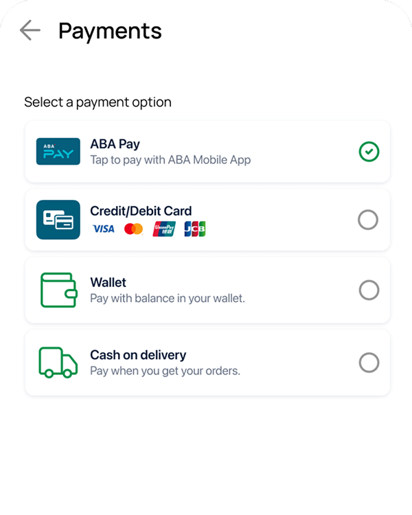 At Eastbuy, we believe convenience should extend beyond just food delivery—it should include how you pay too. Whether you prefer to go digital or stick with cash, we’ve made it simple and secure. Choose from a wide range of popular payment options including ABA Pay, credit/debit cards, e-wallet balances, or cash on delivery. Your payment is processed safely and instantly, so you can focus on what matters most—enjoying your meal.
